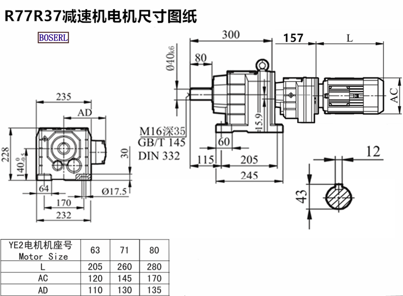 | 齒輪減速電機 | R77R37RN63M4 | R77R37DM63M4 | R77R37YS80M4 |